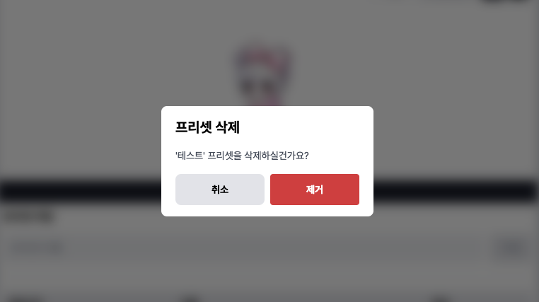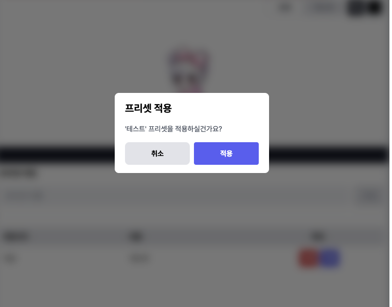 투명셋 및 벗기기 기능과 동일하게 적용 및 삭제에는 경고를 위한 다이얼로그가 나타나게됩니다.