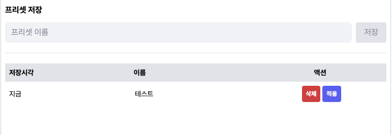 - 프리셋 기능이 추가되었습니다.