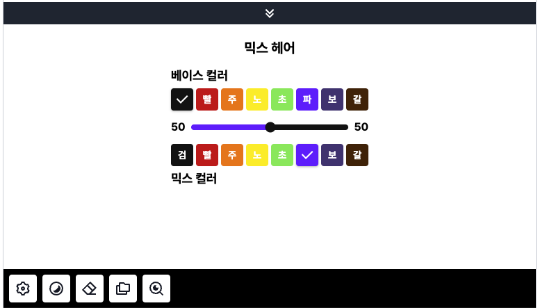 활성상태의 아이템의 우측 페인트 아이콘을 클릭시 염색 기능이 활성화됩니다.