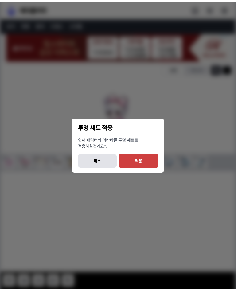 투명 세트 적용시 위 이미지와 같은 다이얼로그가 나타납니다.