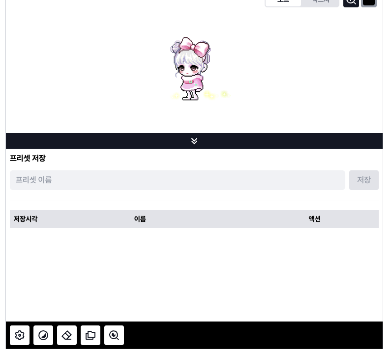 프리셋은 메이플커마 DB 서버에 저장되지 않고 사용자 기기 DB내에 저장되어 사용 가능합니다.