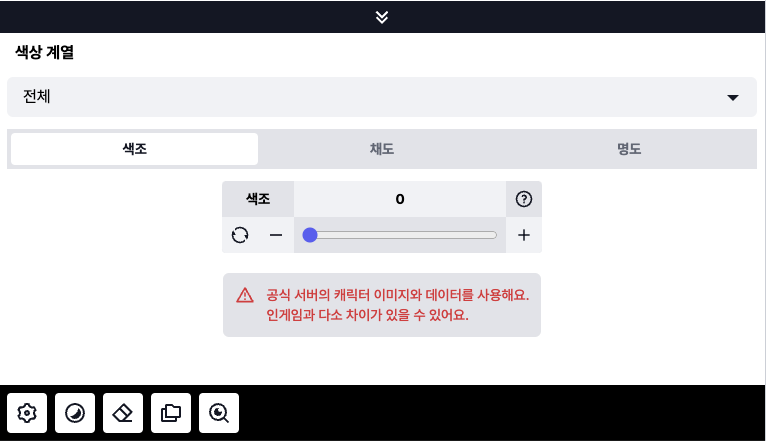 해당 아이템의 계열 및 색조/채도/명도 를 각각 구분하여 조절하실 수 있습니다.