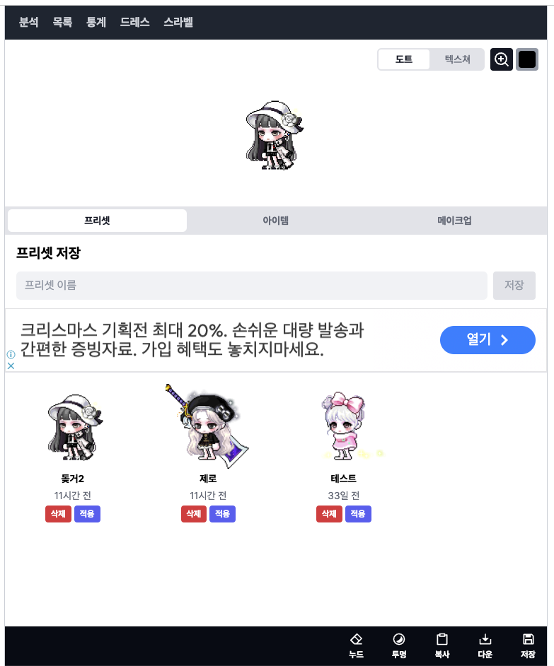 드레스룸 프리셋 기능이 이미지도 보여줄 수 있도록 변경되었습니다.